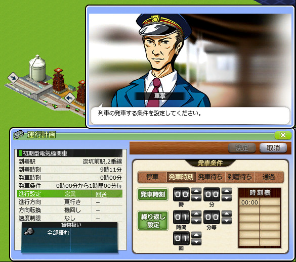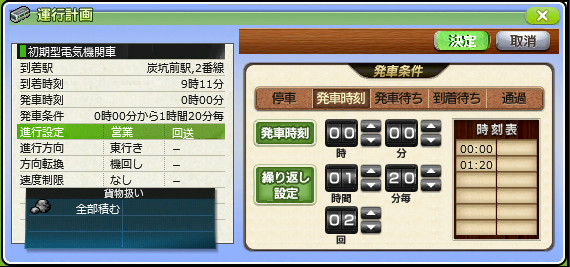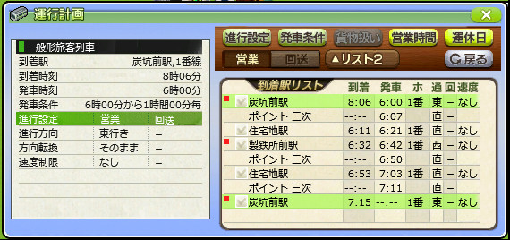 試しに炭坑前駅の発車条件を「