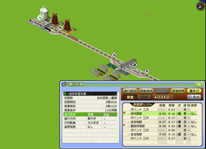 貨物列車に続いて、炭鉱や製鉄所へ向かう通勤客のために旅客列車を設定します。