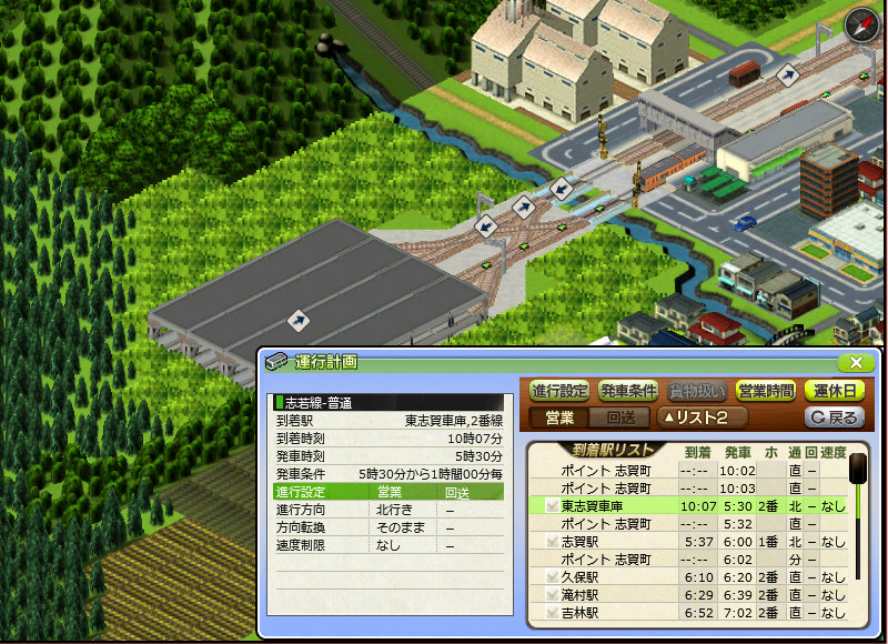 今回は車庫を出た後に画面左側、若月駅方面へ運行することにします。