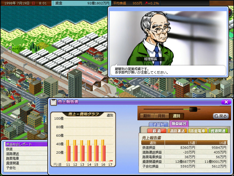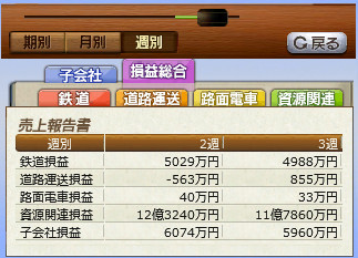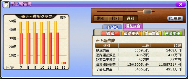 現在の週の鉄道利益は5000万円程度。