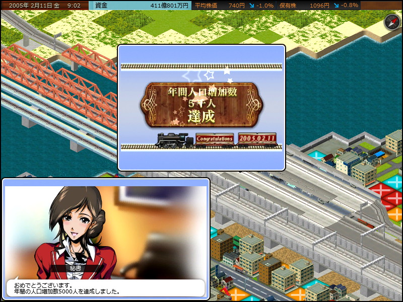 ロードした直後に年間人口増加5000人達成のメッセージが流れました。