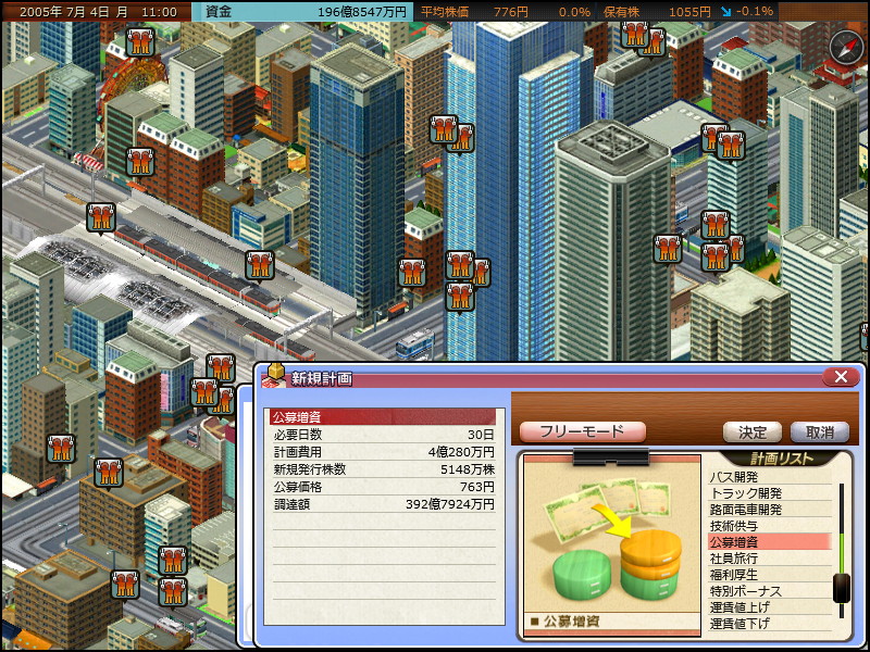 通常の攻略時の場合、不三越線を引くと沿線の発展が進んで路面電車利益が出しやすくなるんですけどね……。