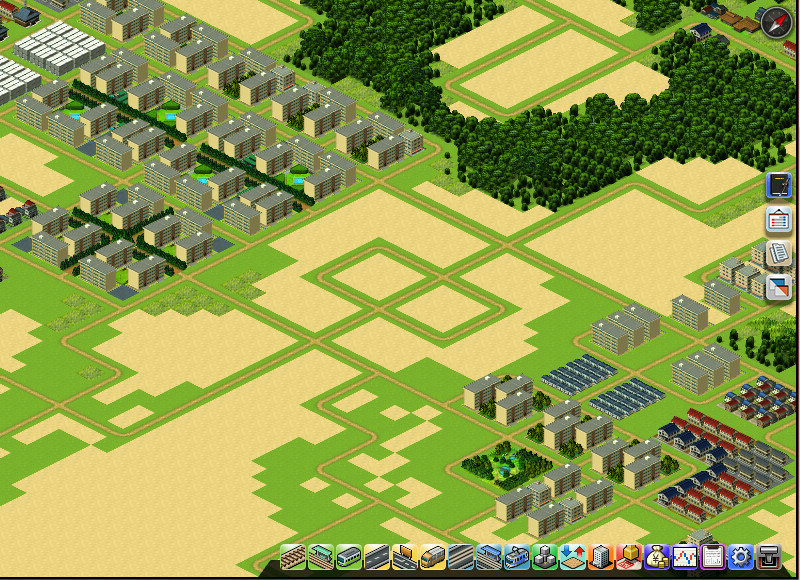 最初からある資材を使い道路を敷設、更に公園・街路樹・並木道を建設。