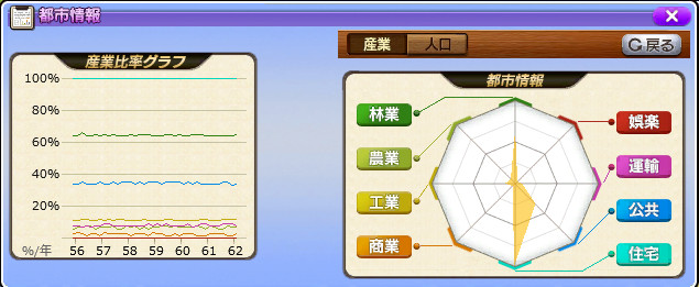 普段は運輸・工業・商業あたりの比率を上げて住宅はNPCに任せているのですが、