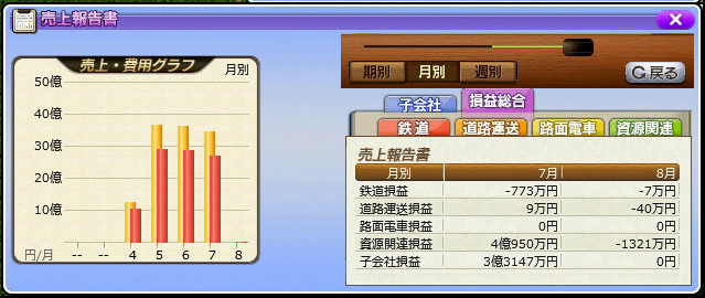 ほとんど鉄道事業をしていないとはいえ、序盤は資源商社になるのは仕方ないことか……。