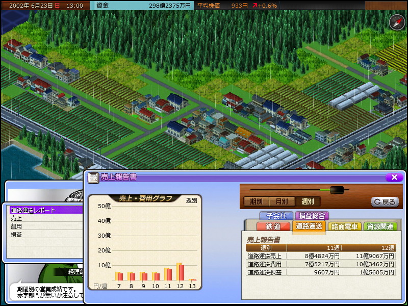 プレイ前には一番の懸念事項だった道路運送利益ですが、初年度に達成してしまいました。