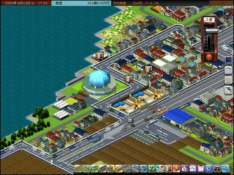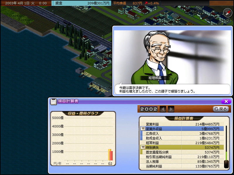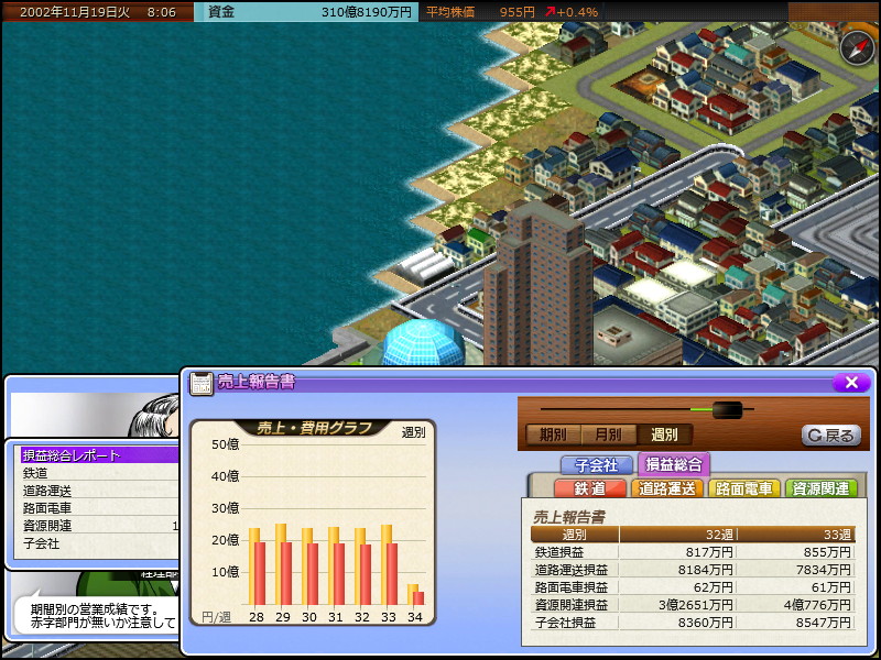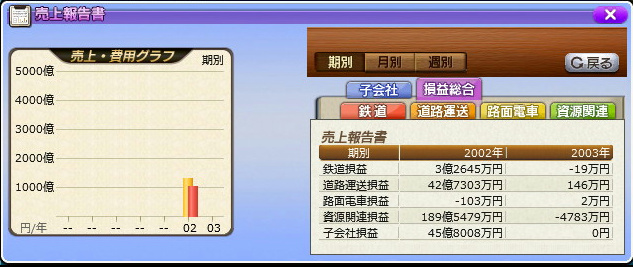 2003年度は路面電車利益への足掛かりとして、鉄道敷設と路面電車の開発を行います。