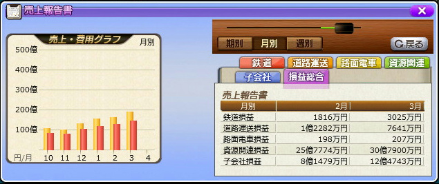 最盛期には1.5億円/週くらいあった道路運送利益が8000万円/週まで落ち込んでいます……。