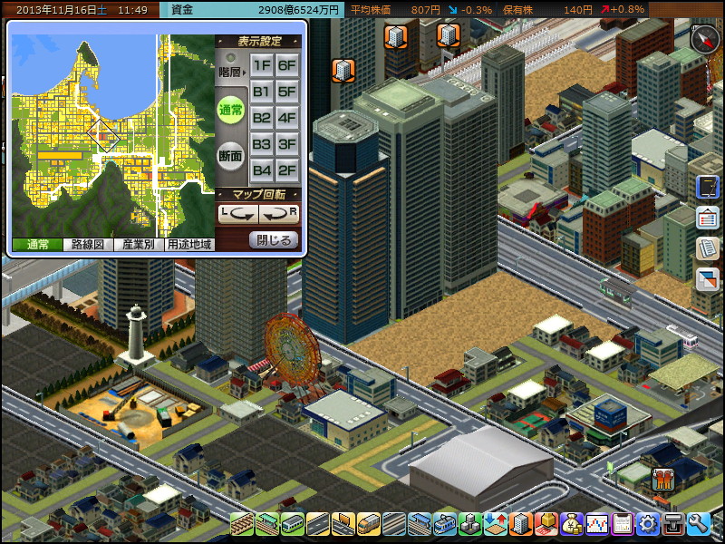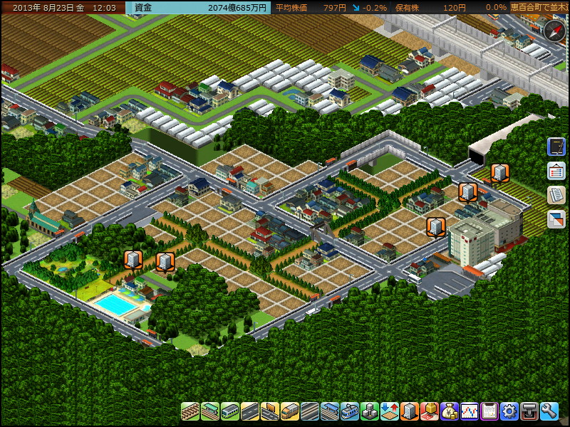 道路から3マス先は目洛町(住宅地区)のため、大きな商業施設は建てられず。