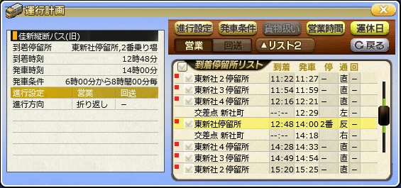 とりあえずバスを2台用意して、鷺殿駅前・河内高田を6時・14時に出発する設定にしました。