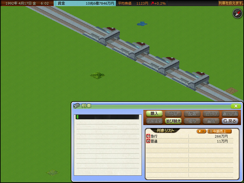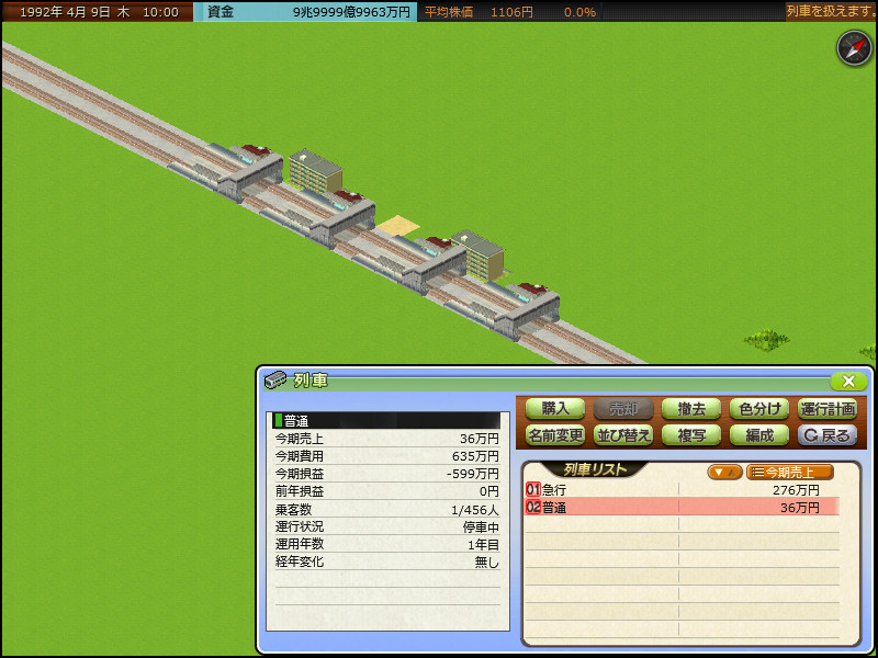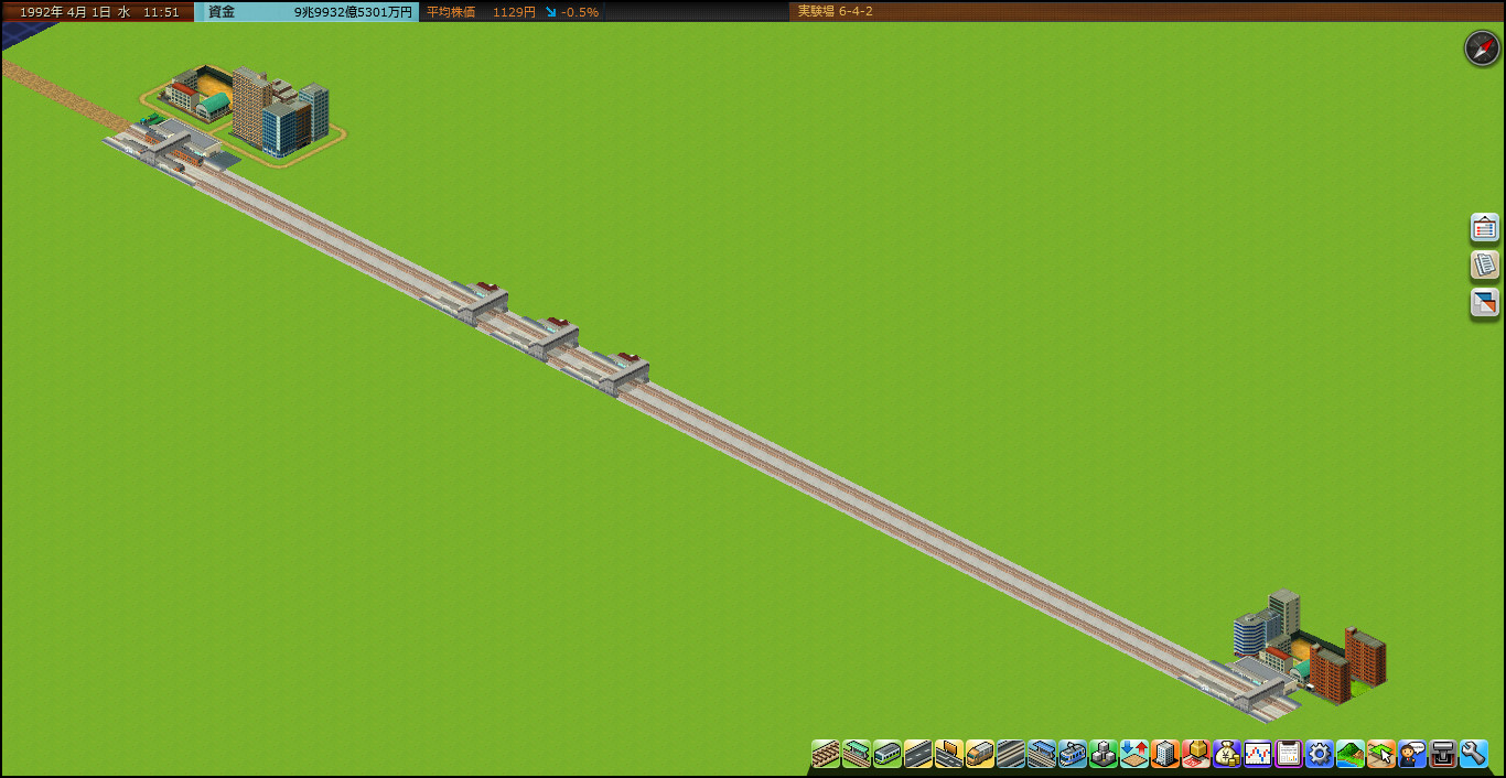 2つの集落を単線並列で結び、同時発車して乗客数(今期売上)を計測するいつもの実験。