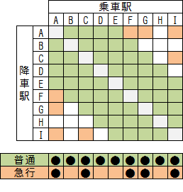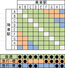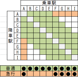 これにより、実際に乗客の需要があるかどうかはともかく、全ての駅同士の需要を満たすことができました。