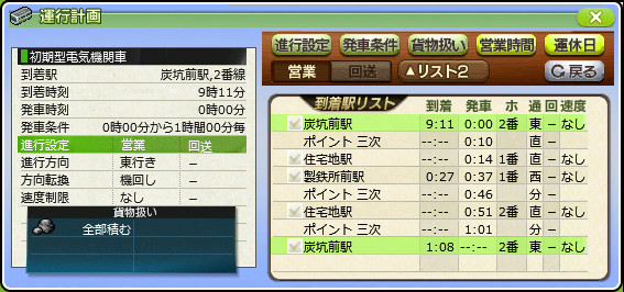 炭坑前駅の1番線には貨物列車が来ないため、夜間はここに待機するよう設定します。