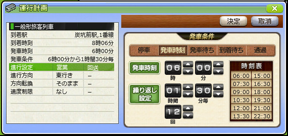 試しに炭坑前駅の発車条件を「