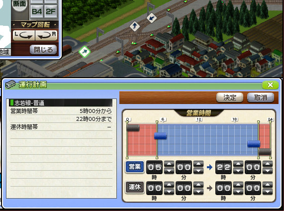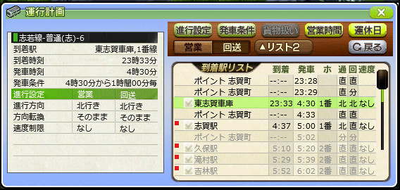 このとき、営業時と回送時で運行設定が異なるため、もし上手くいかない場合は再調整。