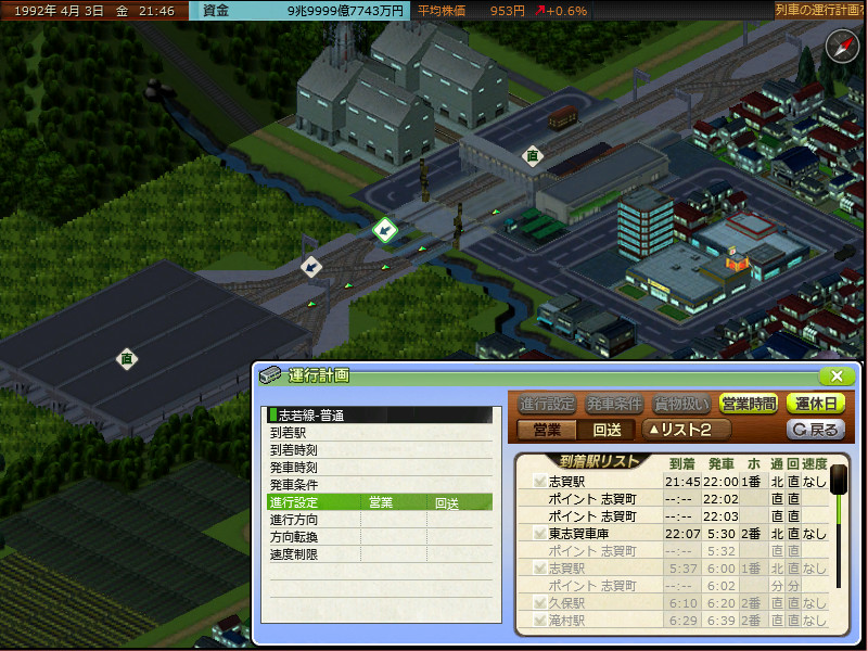 今回は車庫を出た後に画面左側、若月駅方面へ運行することにします。