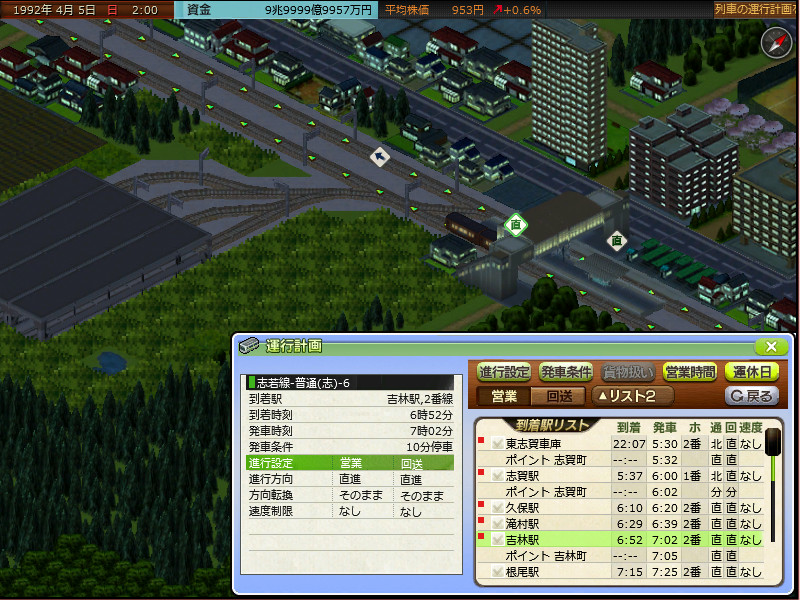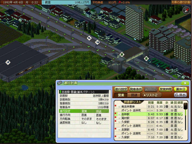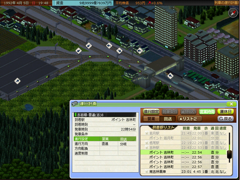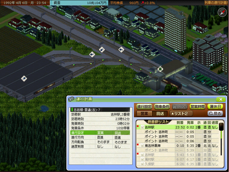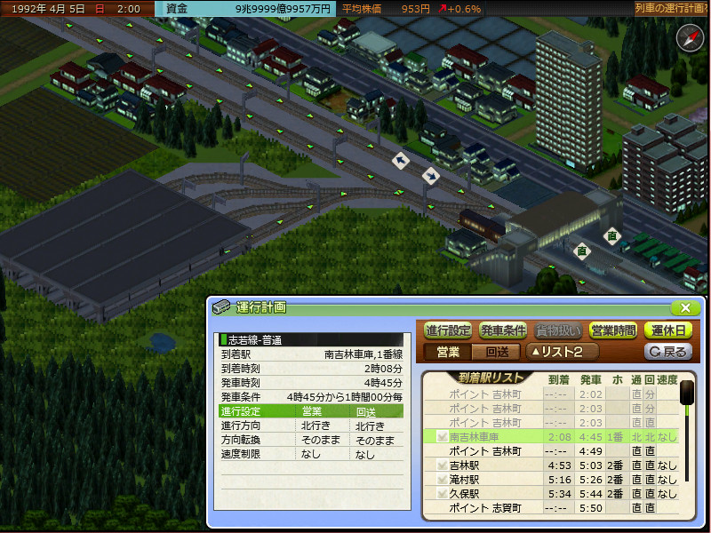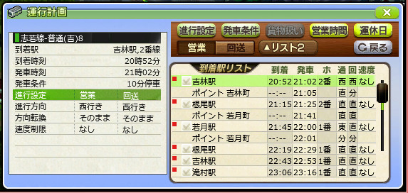 吉林駅・回送時のみ西向きにして、車庫へ向かうようポイント設定して設定完了。