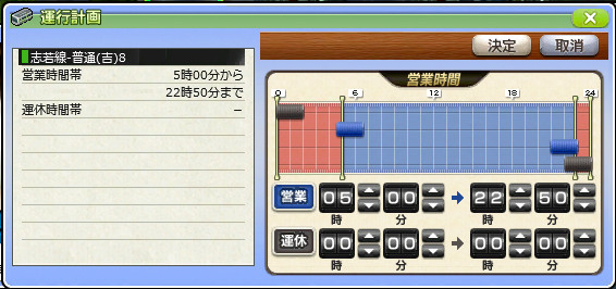 まず最初に、営業を終了して回送に入る時刻を設定します。